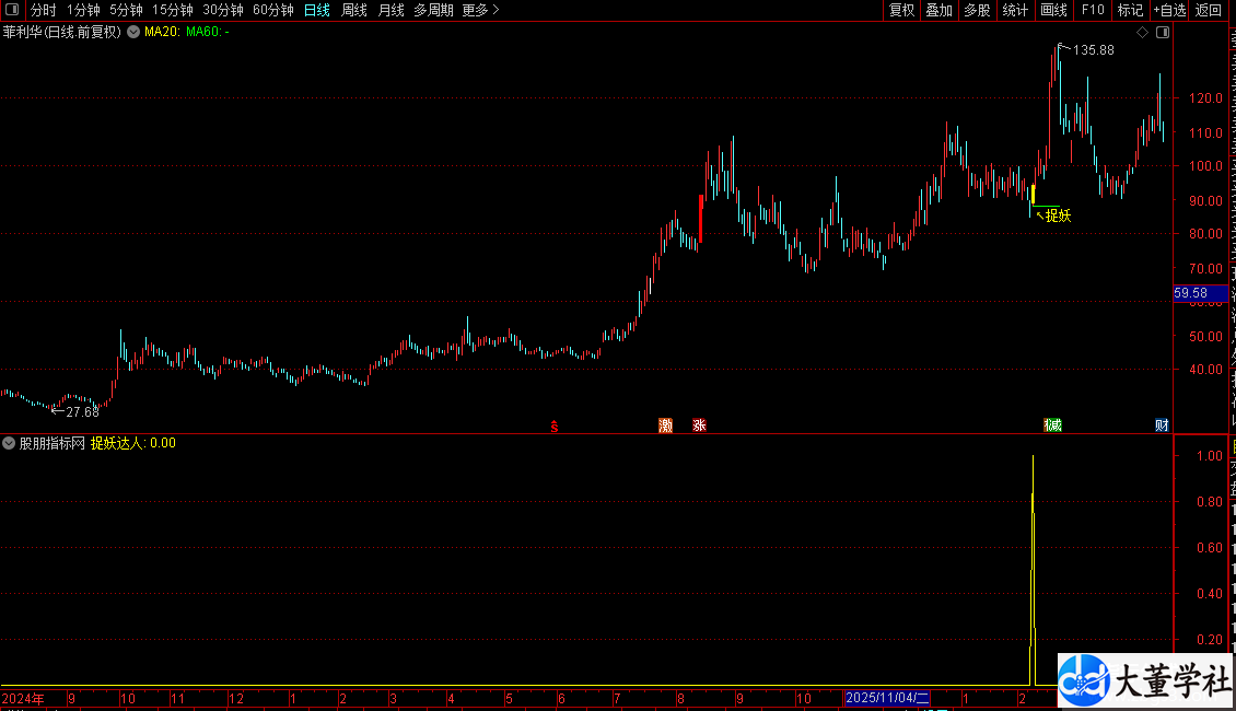 捉妖达人指标是专为通达信设计的主副图配套妖股捕捉公式,融合量能均线、乖离率、价格突破等核心算法,无未来函数不漂移,严格筛选60/00/30开头A股,过滤无效信号,精准锁定强势股起爆节点,主图直观标注信号、副图明确提示买点,专为短线抓妖股、捕捉连板启动行情打造。