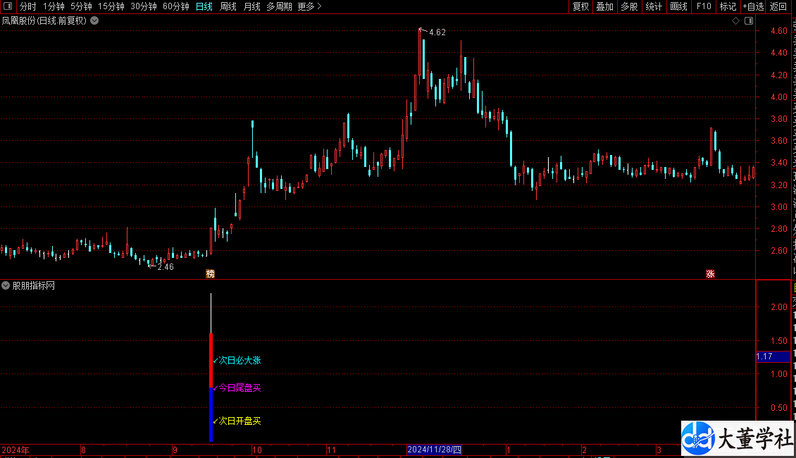 操作策略:指标触发时会在图表上显示彩色柱状图和文字提示,建议投资者在信号出现当日尾盘或次日开盘时介入,预期次日股价会有显著上涨空间。