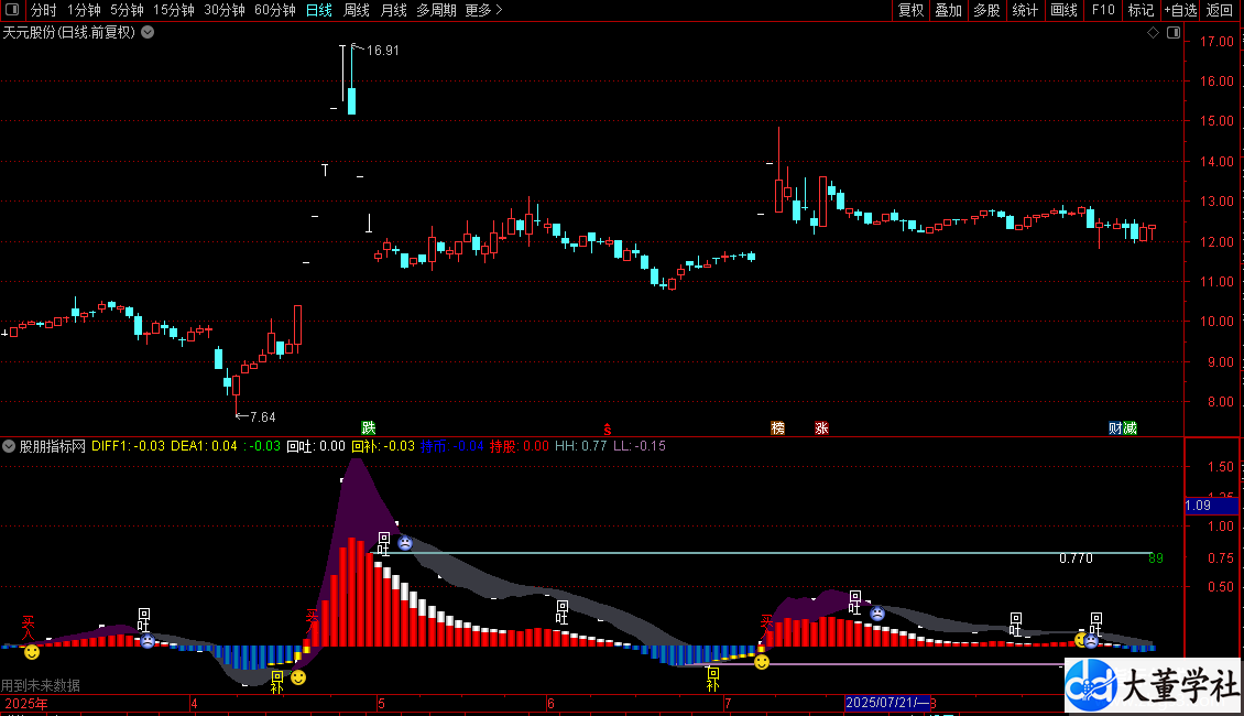 7. 信号提示:文字标注“买入/回吐/回补”,图标提示金叉死叉
